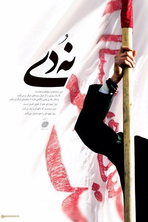 روز نهم دی در تاریخ ماند. این جمله رهبر انقلاب اسلامی است. ایشان فتنه ۸۸ را حاصل برنامهریزی چندین سالهی دشمنان و در ادامهی قضایایی چون فتنهی سال ۷۸ تحلیل می کنند و راهحل علاج آن را حرکت عظیم مردمی همانند آنچه در ۹ دی سال ۸۸ اتفاق افتاد میدانند. از نگاه رهبر انقلاب روح دیانت حاکم بر دلهای مردم و توجه به فرهنگ عاشورا از خصوصیات مشترک حماسهی ۹ دی و حوادث دوران پیروزی انقلاب اسلامی است.